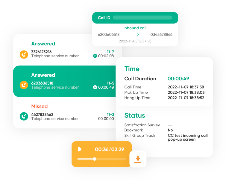 Track communication performance with recordings, dashboards, and detailed reports for quality assurance.