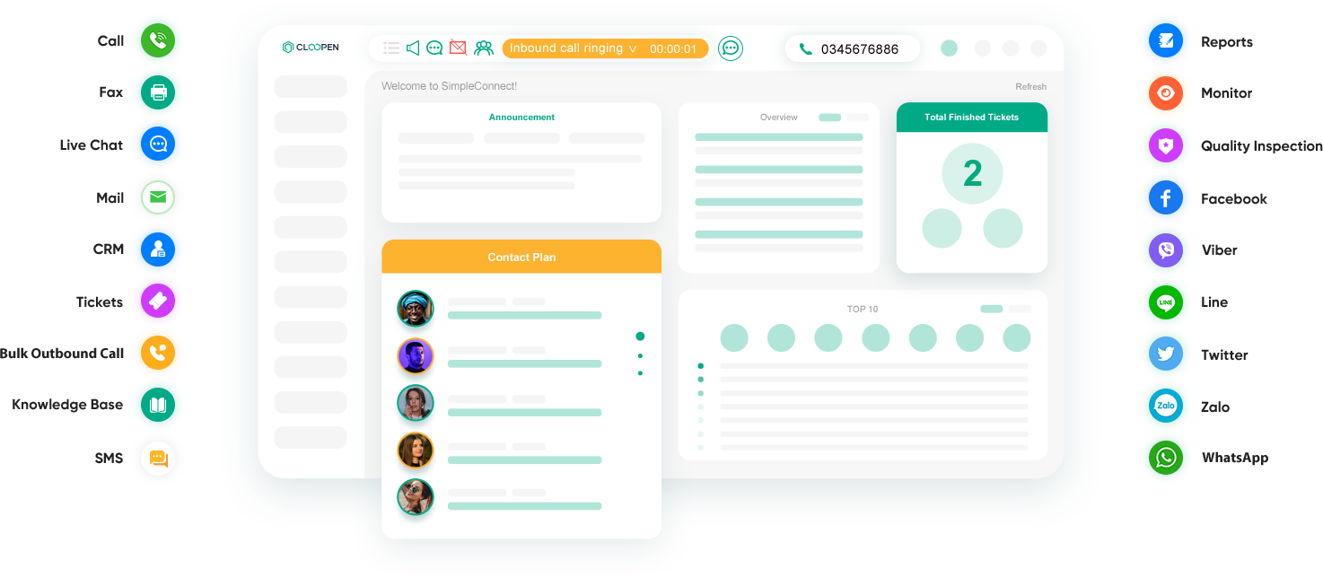 Manage calls, SMS, WhatsApp, email, and social messages from a unified interface for a consistent customer experience